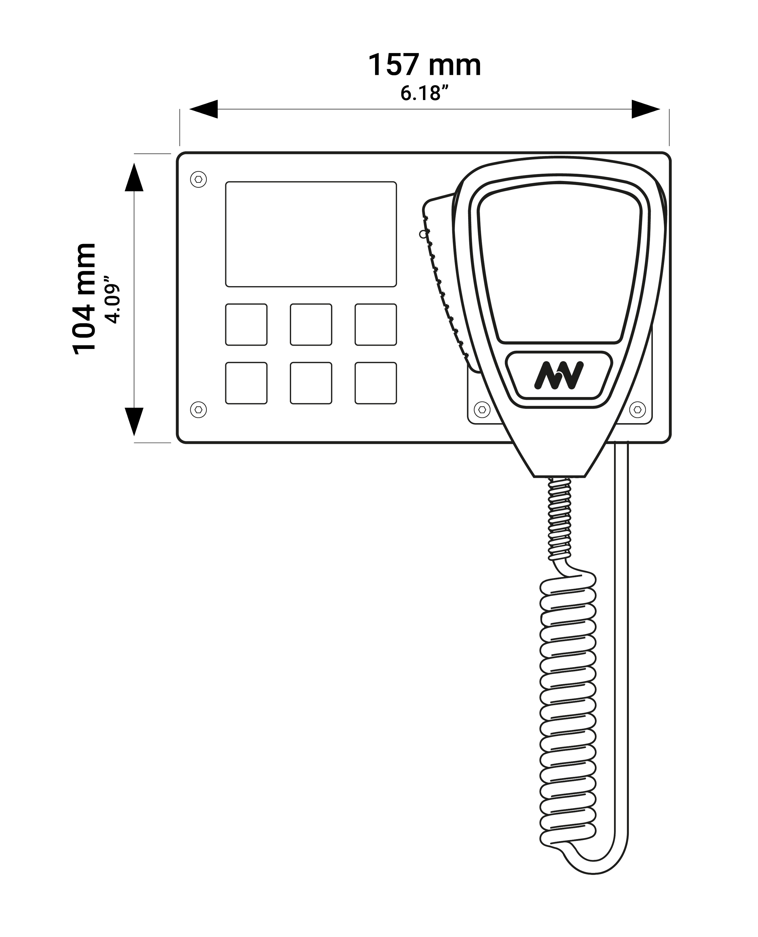| Description | Compact six button microphone station with OLED user interface |